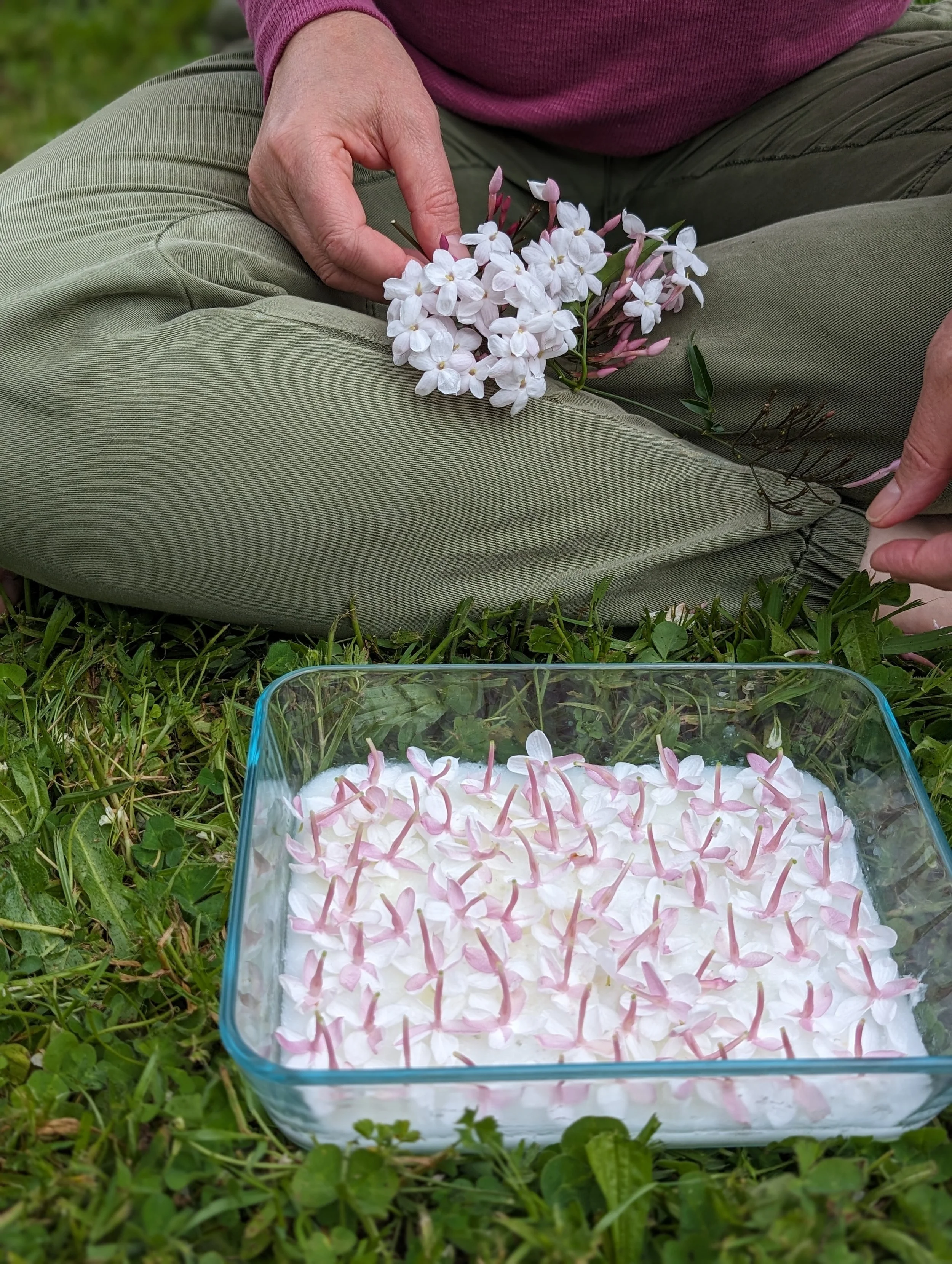 And just so you know… you can use many types of aromatic flowers for an enfleurage such as Orange, Lemon, or Lime blossom, Lilac, Lily, Rose, Magnolia, Linden Flower, Hyacinth, Carnation, and Honeysuckle. I have a Lilac enfleurage going right now and it is amazing.